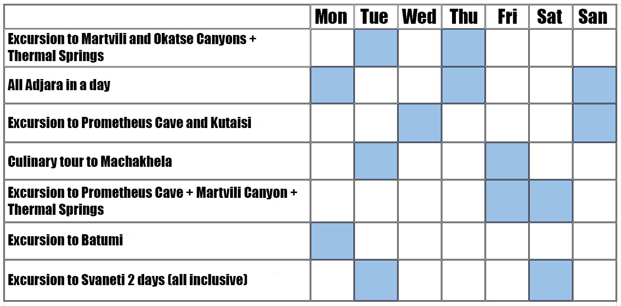 Schedule of excursions from Batumi